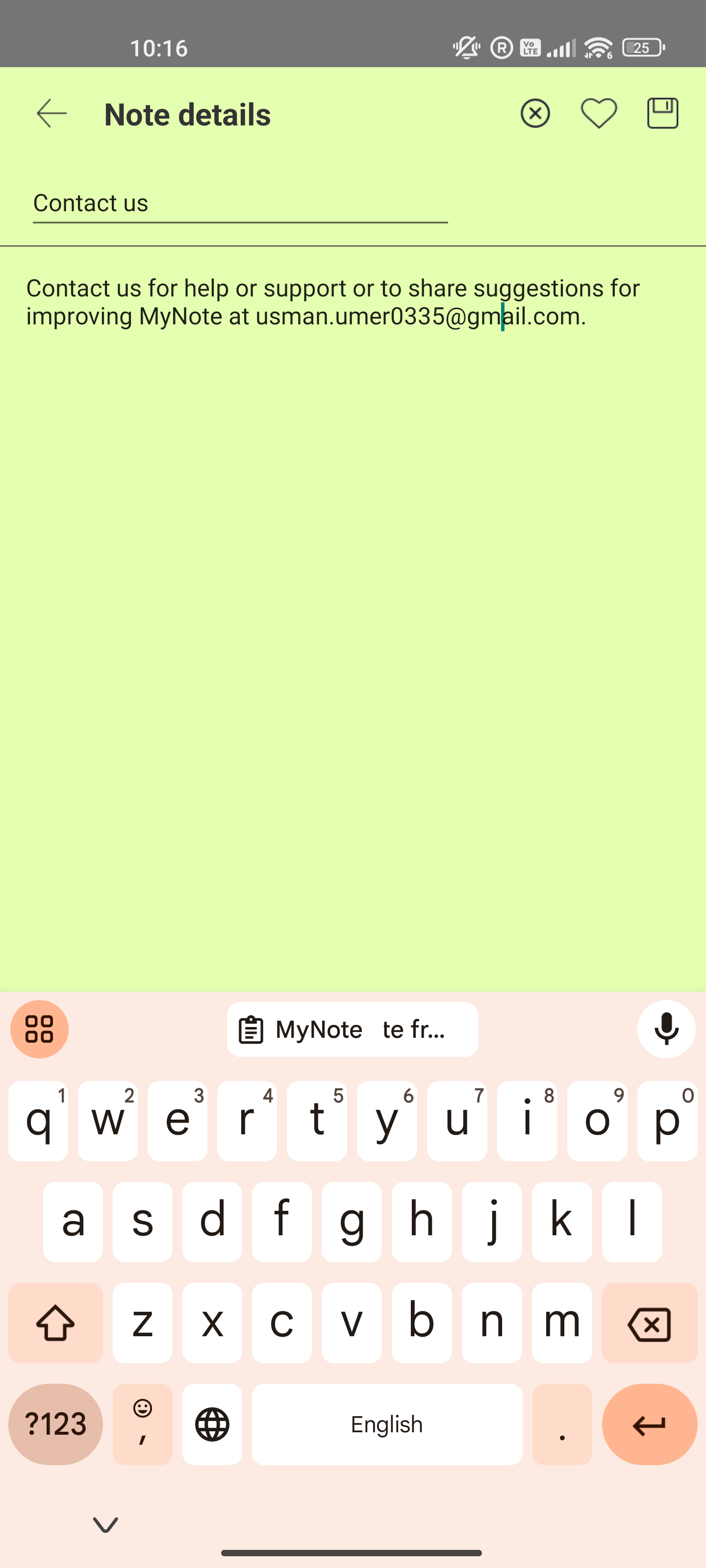 Contact us for help or support or to share suggestions for improving MyNote at usman.umer0335@gmail.com.